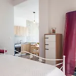 O bucătărie complet utilată, împreună cu o zonă de luat masa sunt disponibile pentru a lua masa.